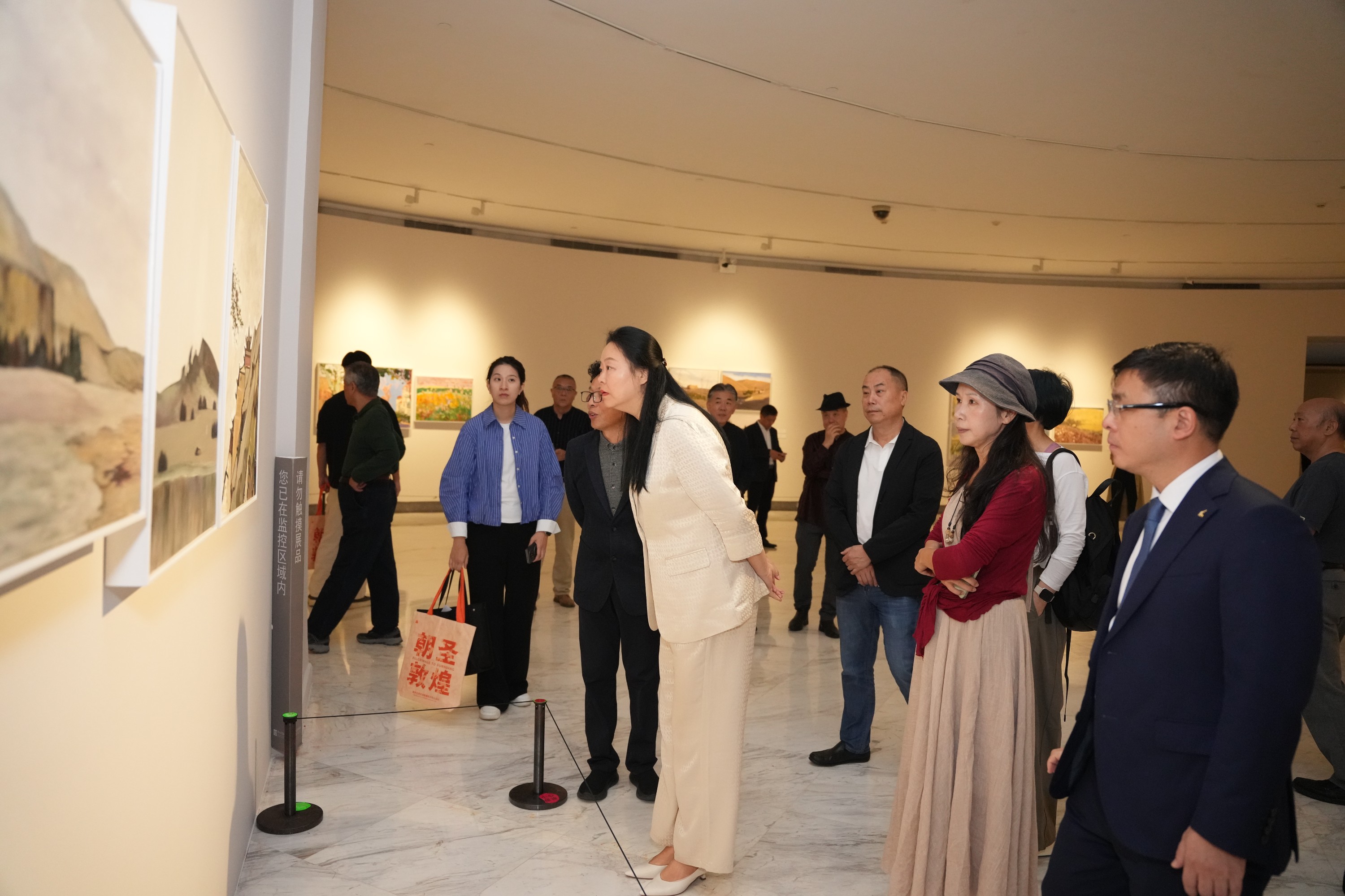 回顾这段创作经历,艺术家代表、中国美术家协会副主席陆庆龙深有感触,他说,“此次采风,我们走访了莫高窟、玉门关、月牙泉等多个地方,还游览了敦煌市区,处处皆是美景。中国的美景遍布各地,但敦煌有着独树一帜的魅力——这里的地理风貌独特,文化底蕴尤为厚重,特别适合艺术创作,置身其中便让人忍不住想要提笔。在敦煌的6天里,不少画家一天就能产出多幅作品,每人通常能完成十几张写生佳作。这些现场创作的作品鲜活生动,与室内创作有着截然不同的质感。”