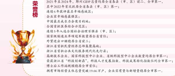经济版图上,2021年至2024年,鄞州GDP总量均居全省各县(市、区)前二、全市第一,其中2022年首次跃居全省各县(市、区)第一。2024年城镇和农村居民人均可支配收入分别达到91698元和56491元,收入倍差缩小至1.62,发展的强劲脉动与民生的幸福韵律同频共振,为城市前行筑牢坚实根基。