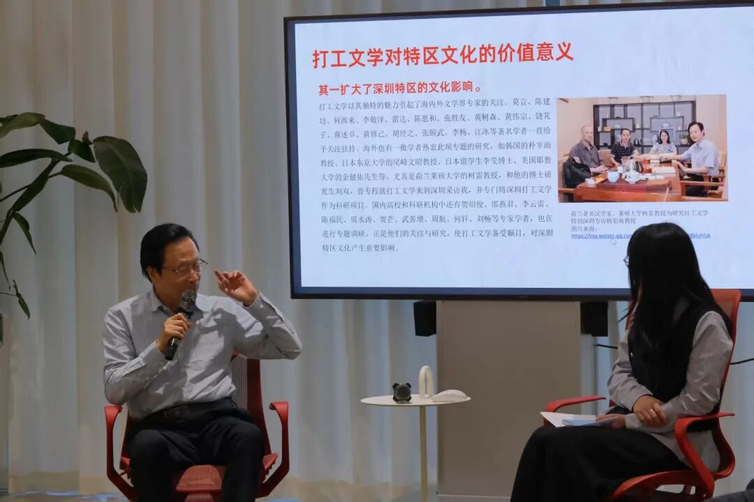 作为深度参与并见证打工文学成长的学者、文化工作者,杨宏海老师的分享是一幅鲜活的“文学—城市”共生图景(注2)。他回忆道:1985年从内地高校调任深圳市文化局时,肩负着“研究什么是特区文化”的使命,也正是在城市街巷的实地调研中,他捕捉到了打工文学的萌芽(图2)。