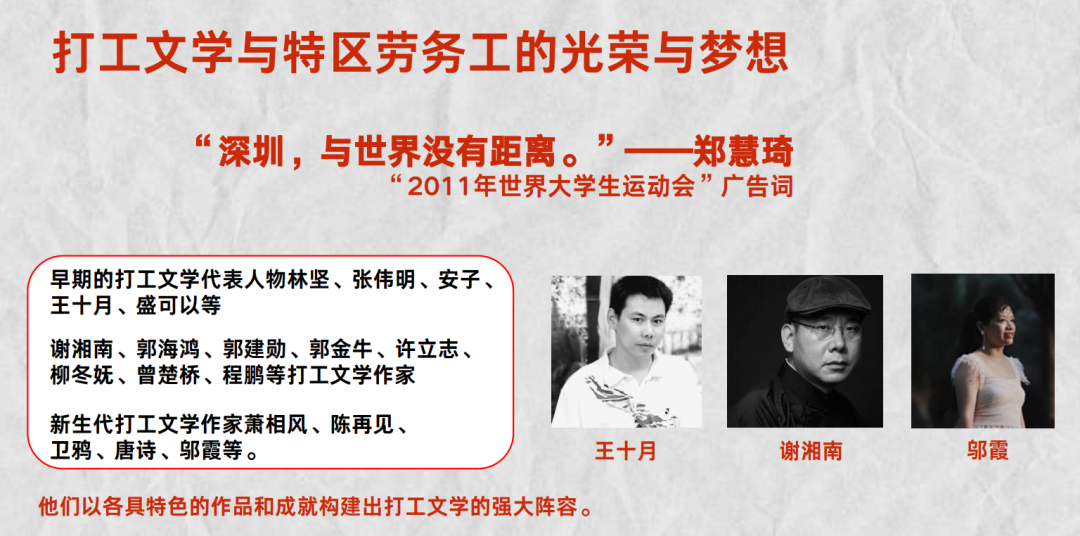 图4 杨宏海老师梳理的打工文学代表人物。