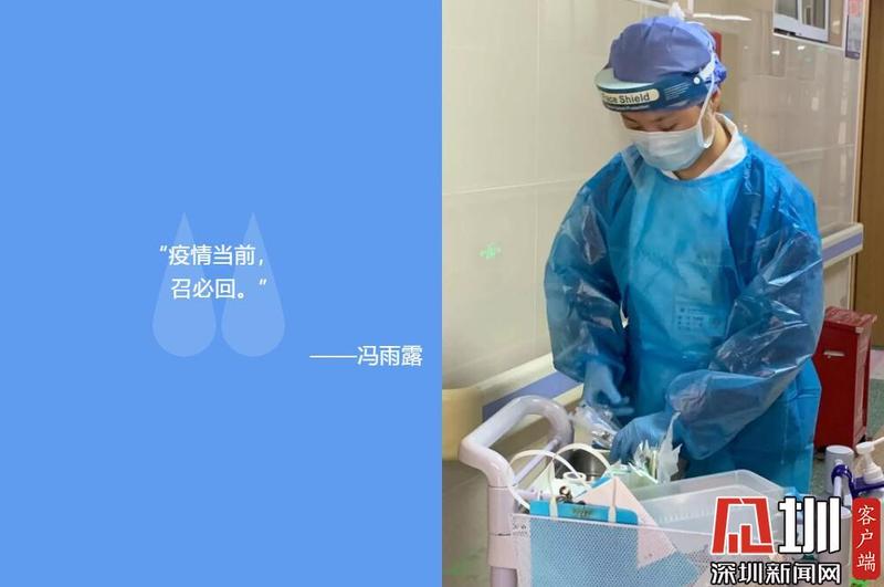 “疫情当前,召必回。”这是冯雨露简单而朴实的一句话。大年初三,本是冯雨露订婚的大喜之日,按河南习俗,女方及亲朋好友要一同到男方家中设宴共同见证。冯雨露因为工作缘故已经连续两年没有回家过年了,为了回家团圆及筹备订婚事宜,她特意调好假期,年二十六匆匆赶回河南。大年初一下午,医院下发返深抗击疫情的通知,作为感染疾病科的护士,冯雨露一收到通知,当下就决定返深,可父母已经通知了亲属初三来参加她的订婚宴,父母能接受自已的这个决定吗?还是先说吧,当她忐忑的将自已的决定告别诉父母时,父母不舍地说:“河南人讲究风俗规矩,都希望自己孩子的人生大事圆圆满满的,但你是护士,这个时候本不该掉队。可你未婚夫那边怎么办?”这也确实难倒了她,未婚夫家能理解吗?毕竟未来的婆婆才见过一次面。这次休假回来还没来得及去看望,就这么回去上班,确实不妥。她坦诚地把所有的顾虑都和未婚夫讲了,没想到未婚夫特别理解她,“工作重要,现在科室最需要你,父母那边我去沟通,回去吧,我陪你一起回去。”“你们彼此的理解与支持,比订婚更重要。”在征得双方父母的同意后,大年初二一大早,冯雨露便跟未婚夫自驾30多小时返深,初三下午到达深圳后,立即投入工作,为发热新冠病待查的患者检查、协助治疗。看到未婚妻如此坚毅,冯雨露的未婚夫感慨地说:“平时她在我面前比较娇柔,但面对危险,她毅然前行,我必然鼎力支持。”