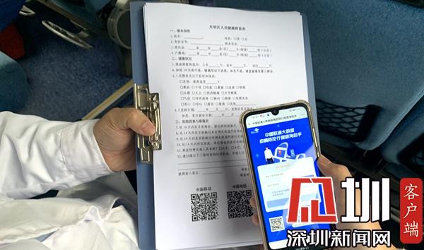 工人通过一系列检测程序后,陆续上车。朱医生给每位工人的手部进行消毒,并且教他们正确佩戴口罩的方法,提醒他们全程佩戴好口罩,在服务区下车时要尽量减少聚集。在车辆行驶到中途以及即将抵达终点时,朱医生也先后两次为工人测温,全程监测他们的健康状况,并如实填写《光明区人员健康筛查表》,保障返深人员的健康。
