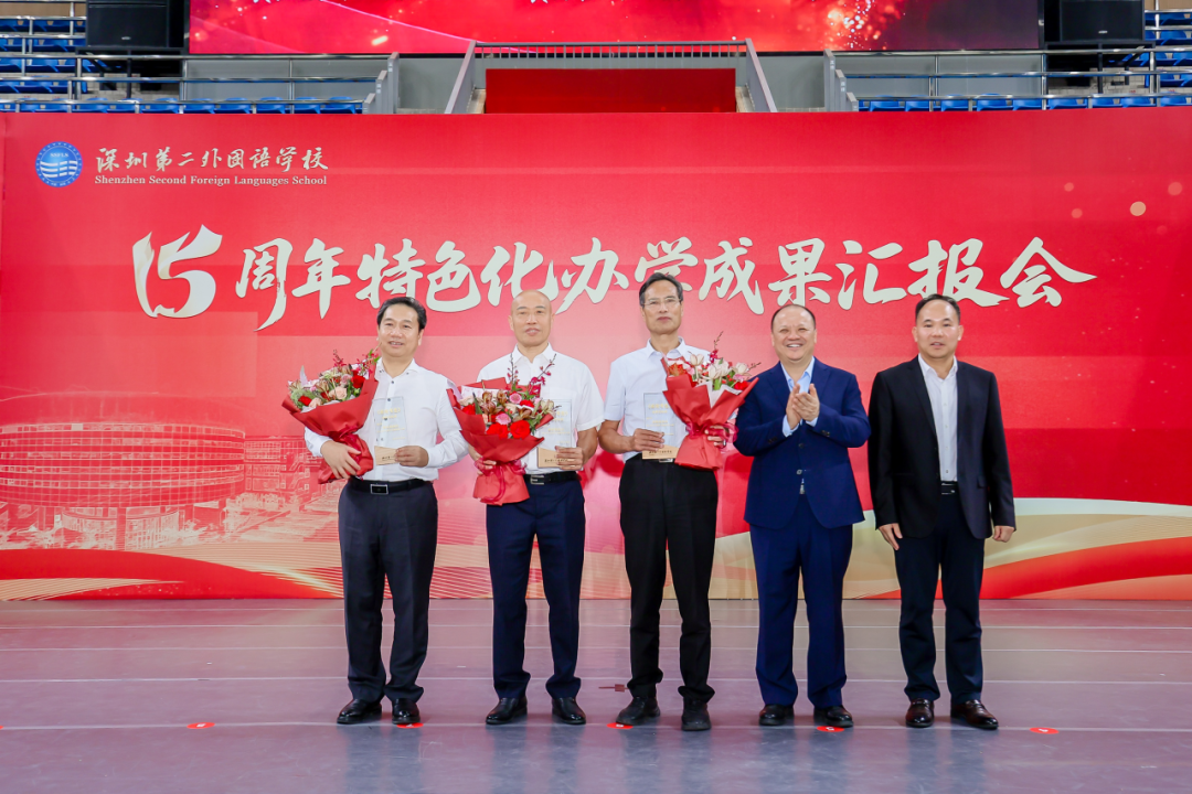 十五年走来,那些为深二外发展倾注心血的身影,一直在默默地助力深二外学子坚定前行。校党委王东文书记为他们颁奖,并致以最崇高的敬意。他们来自不同的岗位,拥有不同的身份,但都是教育的摆渡者,更是青春的引路人。感谢他们的持续耕耘,在深二外这片教育的沃土上,撒下希望的种子。