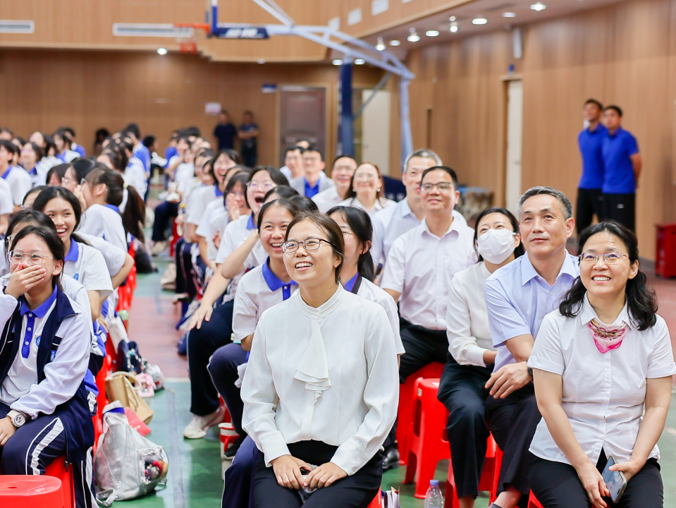 全校师生共同观看了十五周年特色化办学纪实片《十五而志 逐梦前行》。视频画面不断切换,每一个镜头、每一张照片都记录着深二外一路走来的成长,都是深二外人用心书写的教育答卷。在十五周年这一重要节点,深二外人将以热血浇灌理想,以匠心雕琢未来,以守正创新的姿态,再次起航。