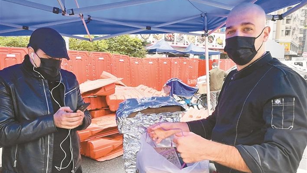 意大利友人到福田沙嘴管控区门口送披萨