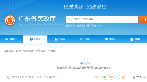 茂名市委原常委、市纪委原书记李长林已履新省民政厅