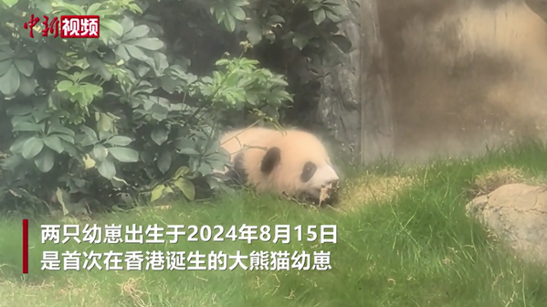 香港海洋公园6日组织传媒探访“港产”大熊猫龙凤胎“家姐”“细佬”,介绍两只大熊猫幼崽最新生活情况。