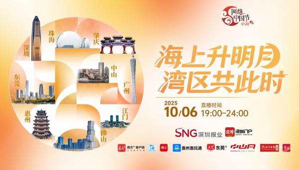 当明月升空,万家灯火与皎皎清辉相映成画,这个中秋,一起解锁赏月新姿势!10月6日19:00–24:00,湾区九城将推出联动慢直播,多城风光实时切换,足不出户即可打卡广州、深圳、珠海、佛山、江门、肇庆、惠州、东莞、中山最美月色。同一轮明月,点亮九城夜色;同一片湾区,共此温情时刻。这个中秋,让思念穿越屏幕,让团圆超越距离——天涯共此时,湾区月正明。