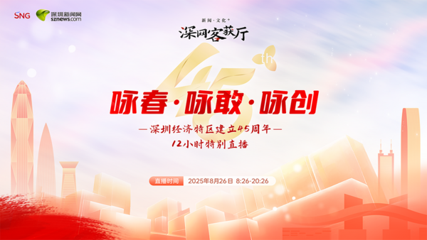 又到8.26——为立体展现深圳经济特区建立45周年发展成就,传承和弘扬敢闯敢试、敢为人先、埋头苦干的特区精神,深圳新闻网将于8月26日上午8:26-晚上8:26开展为期12小时的不间断直播。