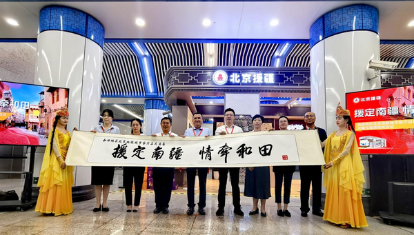 9月19日上午11时,“援定南疆 情牵和田”新疆和田地区北京地铁城市客厅启幕仪式及墨玉县福袋首发仪式在北京地铁7号线双井站启动。