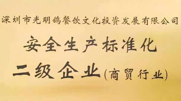 喜讯!鸽文投公司成功通过广东省二级安全生产标准化定级