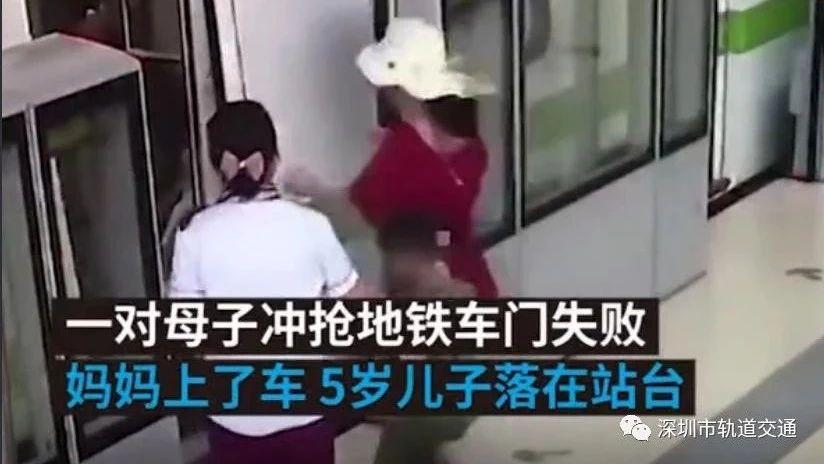 母子组合冲抢地铁车门失败,娃被落在站台...