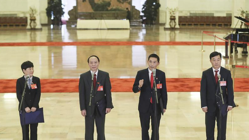 23日下午,广东代表团团长胡春华、副团长马兴瑞看望在京服务党的十九大宣传报道的广东新闻媒体工作者。