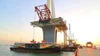 三台架桥机齐上阵!金海大桥力争年底实现边主跨合龙