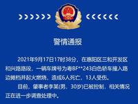 广东惠州一轿车撞入路边摊起火,致6死13伤