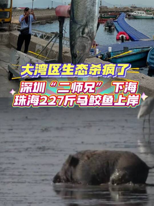 【大湾区生态“杀”疯了!深圳 “二师兄” 下海,珠海 227 斤马鲛鱼上岸!】谁看了不说一句大湾区生态 yyds!近日,深圳海域惊现 “下海二师兄”,野猪勇闯蓝海的名场面刷屏,那边珠海海域迎来生猛巨物 ——227斤巨型中华马鲛鱼霸气上岸!#大湾区 #深圳 #珠海