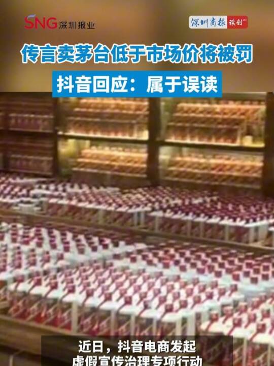 传言卖茅台低于市场价将被罚,抖音回应:属于误读 #茅台 #电商 #抖音