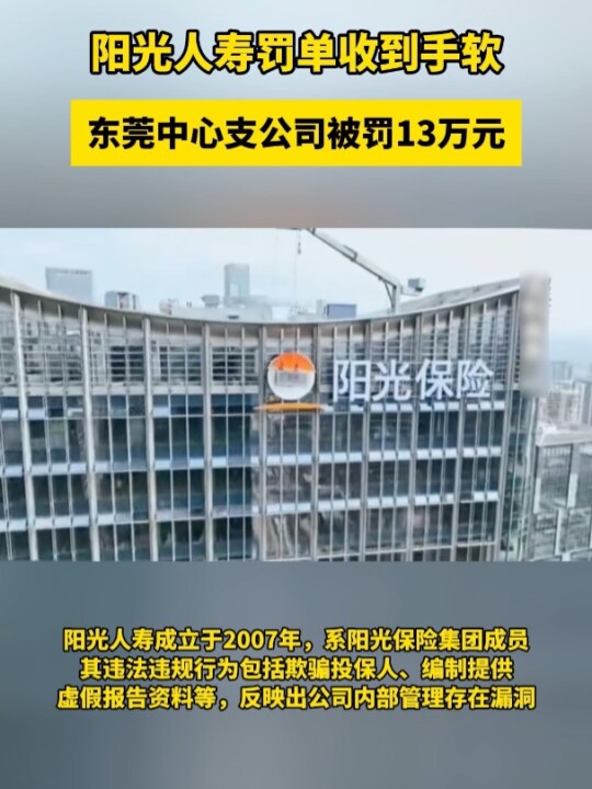阳光人寿罚单收到手软:为其他机构牟取不正当利益,东莞中心支公司被罚13万元。#阳光人寿 #阳光保险