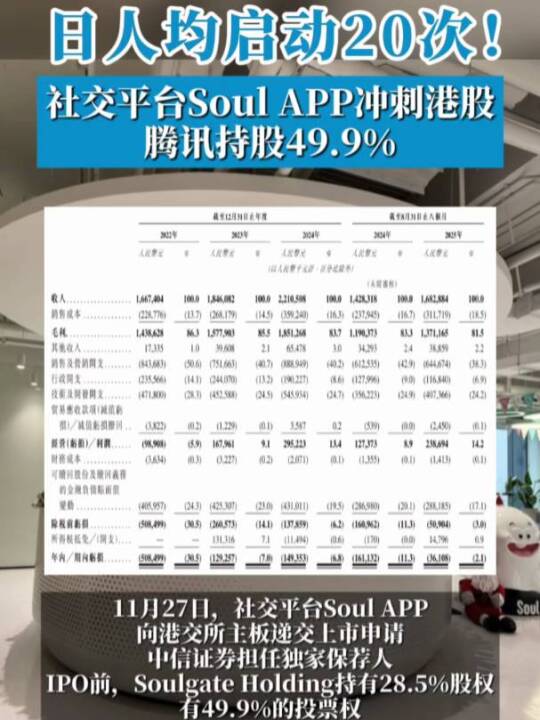 日人均启动20次!社交平台Soul APP冲刺港股,腾讯持股49.9%。 #soul #社交 #上市