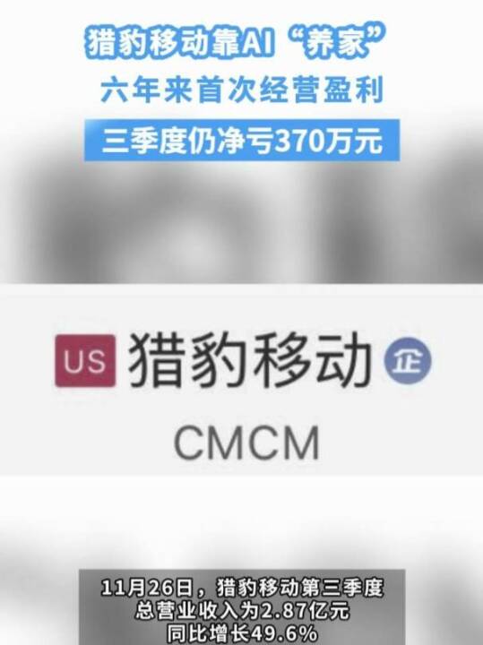 猎豹移动靠AI“养家”,六年来首次经营盈利,三季度仍净亏370万元。#猎豹移动