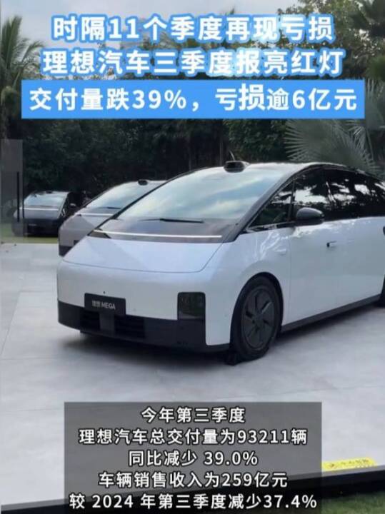 时隔11季度再现亏损,理想汽车三季报亮红灯。#理想汽车 #理想mega #理想亏损
