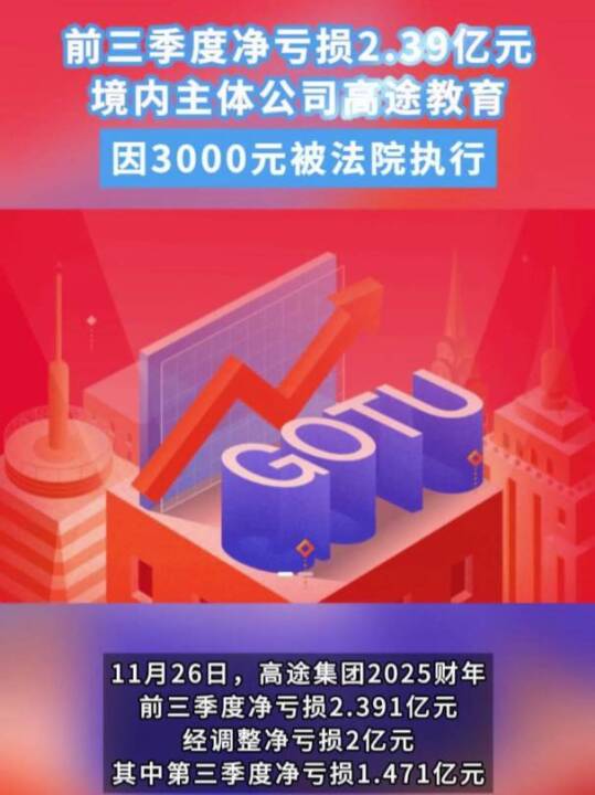 前三季度净亏损2.39亿元,年内多家子公司被罚,境内主体公司因3000元被法院执行。#高途 #高途教育