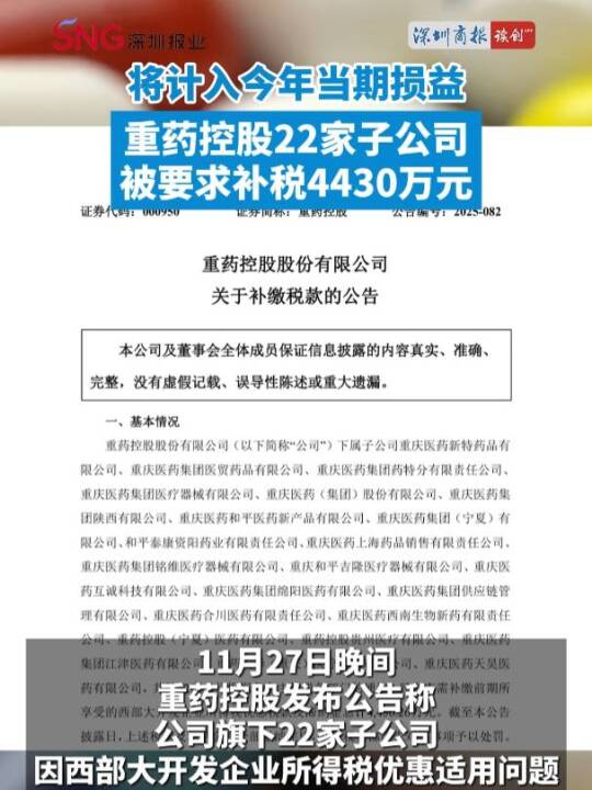 重药控股22家子公司被要求补税4430万元,将计入今年当期损益#重药控股 #补税
