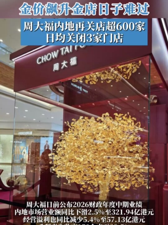 金价飙升金店日子难过!周大福内地再关店超600家,日均关闭3家门店。 #周大福 #黄金 #金价