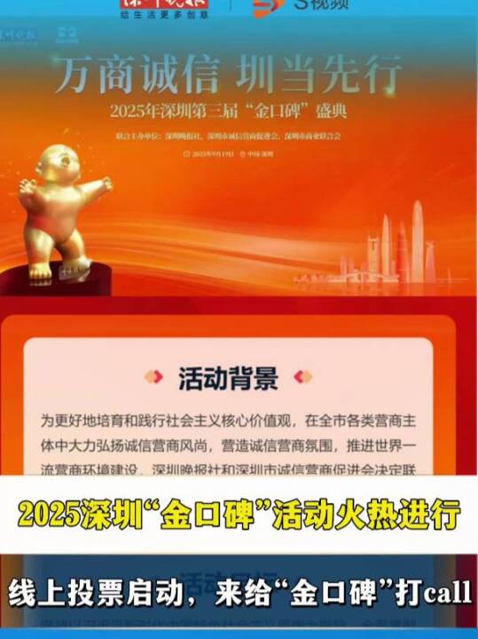 2025年深圳“金口碑”活动火热进行,线上投票通道开启,快来给你心中的“金口碑”打call!(深圳报业集团记者 李超 实习生 许颖曈)