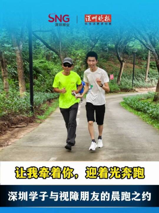 让我牵着你,迎着光奔跑!深圳学子与视障朋友的晨跑之约(读特&深圳晚报记者 谭钧仁/剪辑)