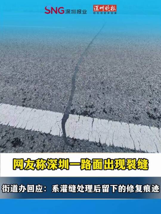 网友称深圳一路面出现裂缝街道办回应:系灌缝处理后留下的修复痕迹(读特&深圳晚报记者 庄莉芝/剪辑)