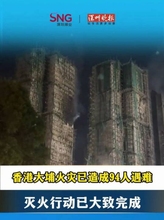 香港大埔火灾已造成94人遇难,灭火行动已大致完成
