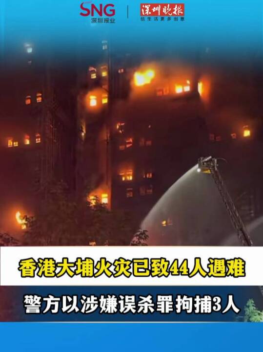 香港大埔火灾已致44人遇难,警方以涉嫌误杀罪拘捕3人