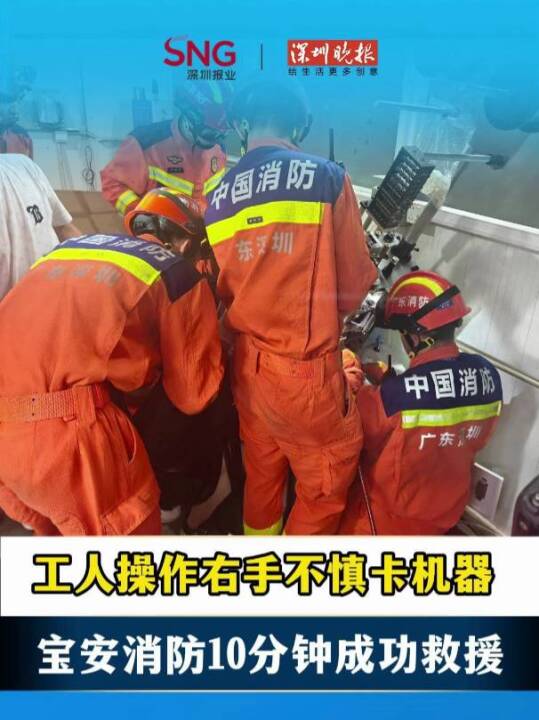 工人操作右手不慎卡机器,宝安消防10分钟成功救援(深圳报业集团记者 罗明 通讯员 戴露葵)