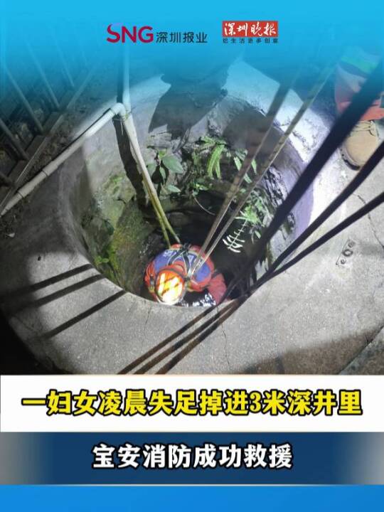 一妇女凌晨失足掉进3米深井里,宝安消防成功救援(深圳报业集团记者:罗明)
