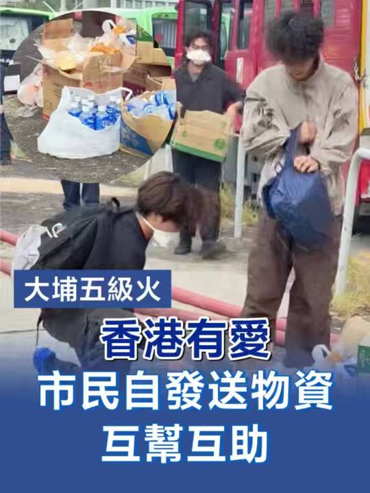 大埔五级火|香港有爱 市民自发送物资 互帮互助(来源:香港商报)