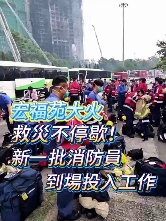 宏福苑大火 救灾不停歇! 新一批消防员到场投入工作(来源:香港商报)