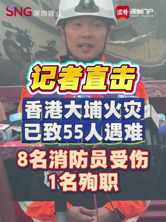 记者直击 香港大埔火灾已致55人遇难 8名消防员受伤,1名殉职 (深圳报业集团&读特 记者 陈雯莉 高灵灵/视频 肖邦昊/剪辑)