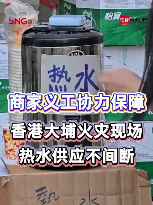 商家义工协力保障,香港大埔火灾现场热水供应不间断。(深圳报业集团记者 刘欣怡 吴佳妙/视频 李剑文/剪辑)