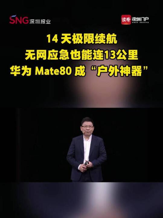 11月25日,华为终端发布会上,正式宣布Mate80系列首发户外探索模式。实现14天极限续航,搭配700MHz黄金频段卫星通信,无地面网络时可发送定位、文字及语音求救。两项技术协同,为灾害现场或野外失联场景搭建起应急通信链路。(读特记者 袁斯茹 黄泽霖)#华为终端 #mate80 #户外神器 #麒麟9030