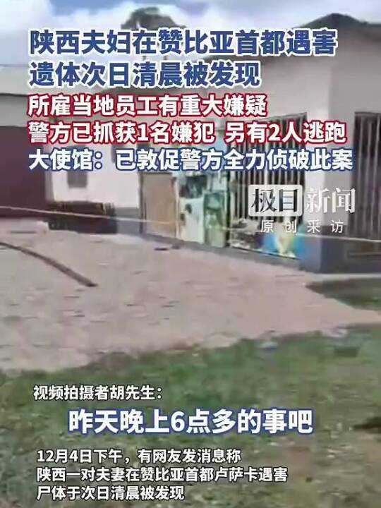 陕西夫妇赞比亚首都遇害,遗体次日清晨被发现,大使馆:已敦促警方全力侦破此案(极目新闻)