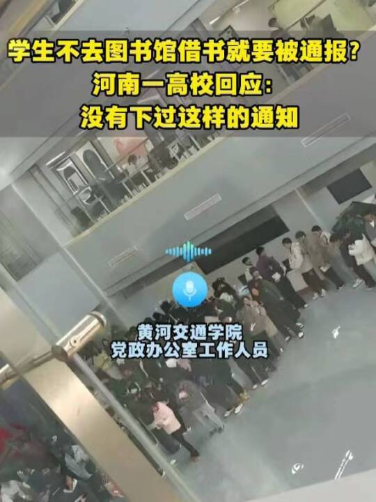 河南黄河交通学院强制要求学生必须去图书馆借书,否则就要被通报批评?多方回应(深圳特区报&读特记者 高灵灵 龚俊杰)