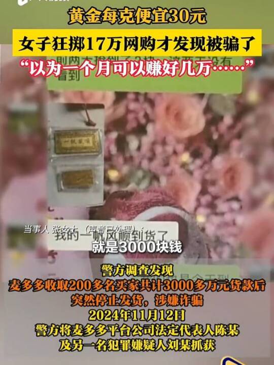 黄金每克便宜30元,女子狂掷17万网购才发现被骗了:“以为一个月可以赚好几万”(南方都市报)