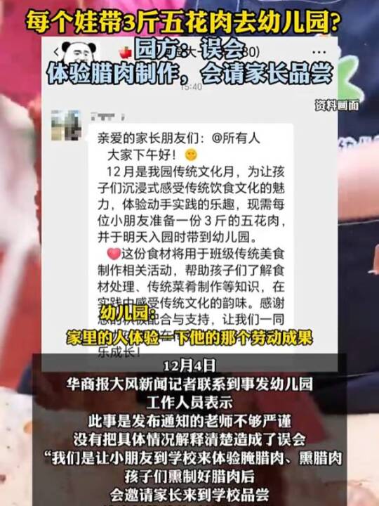 幼儿园要求每个娃带3斤五花肉去?园方:是体验腊肉制作(华商报大风新闻)