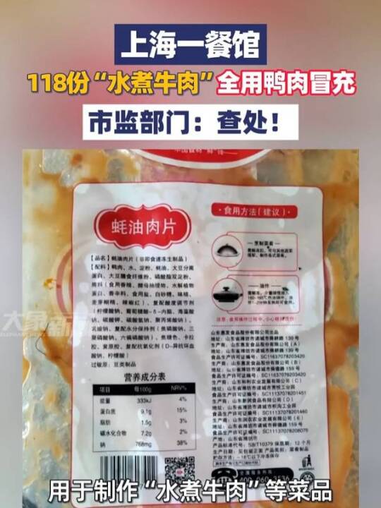 上海一餐馆118份“水煮牛肉”全是鸭肉(大象新闻)
