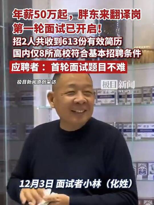 年薪50万起,胖东来翻译岗第一轮面试已开启,应聘者:首轮面试题目不难(极目新闻)