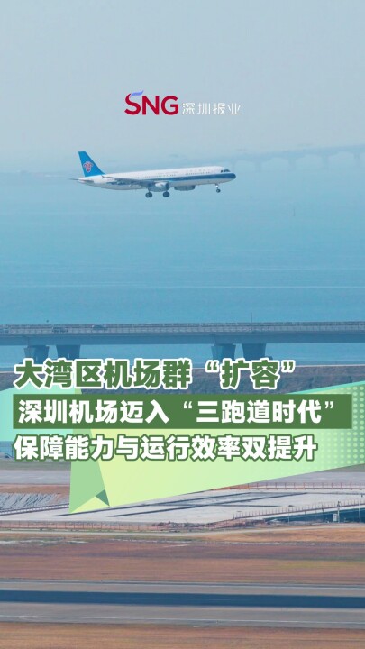 大湾区机场群“扩容”深圳机场迈入“三跑道时代”保障能力与运行效率双提升11月29日,深圳机场三跑道正式投运。当天上午10时08分,深圳航空ZH9103航班从三跑道顺利起飞,10时13分,南方航空CZ3590航班在三跑道平稳降落,成为深圳机场三跑道投运后首个起飞和首个降落的航班。随着三跑道正式投入运行,深圳机场全面迈入“三跑道时代”,迎来了枢纽能级、保障能力、运行效率、发展空间的多重跃升,不仅为区位