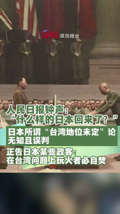 人民日报钟声:“什么样的日本回来了?”日本所谓“台湾地位未定”论无知且误判正告日本某些政客:在台湾问题上玩火者必自焚来源:中国网#大湾区观察#深圳观察