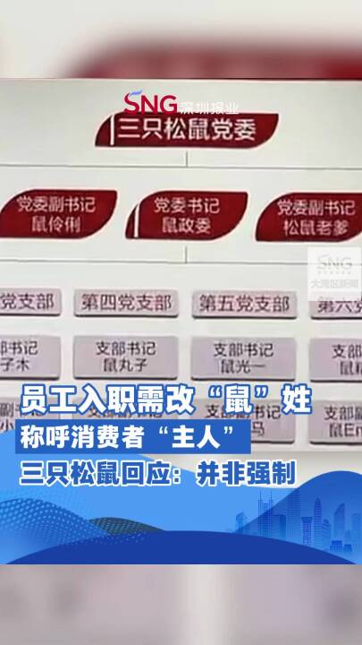 员工入职需改“鼠”姓称呼消费者“主人”三只松鼠回应:并非强制来源:重庆晨报#大湾区观察 #深圳观察