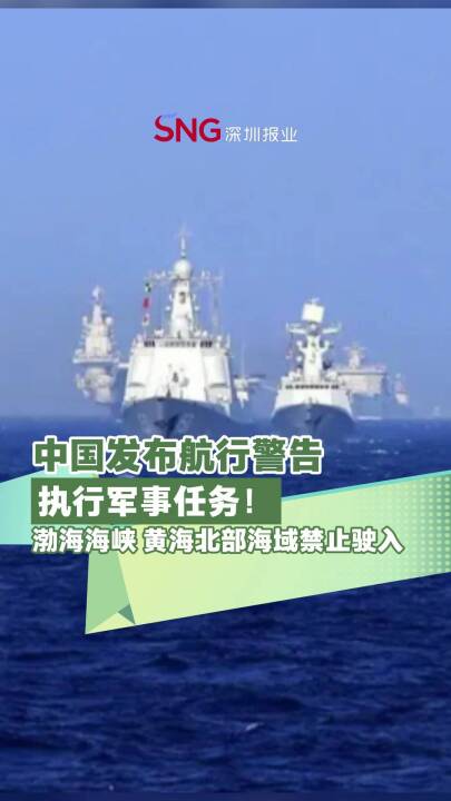 中国发布航行警告:执行军事任务!渤海海峡、黄海北部海域禁止驶入。来源:央视新闻 #大湾区观察# #军迷观察哨#